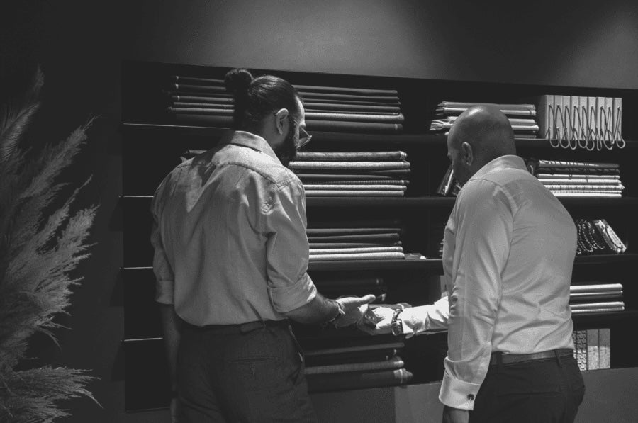 Our flawless fit pursuit is a meticulous collaboration between expert Cutter and front-of-house team. The Cutter's artistry interprets measurements with profound understanding of your physique, creating a unique pattern. Two trial fittings is a testament to our shared commitment to achieving a fit that is nothing short of perfect.