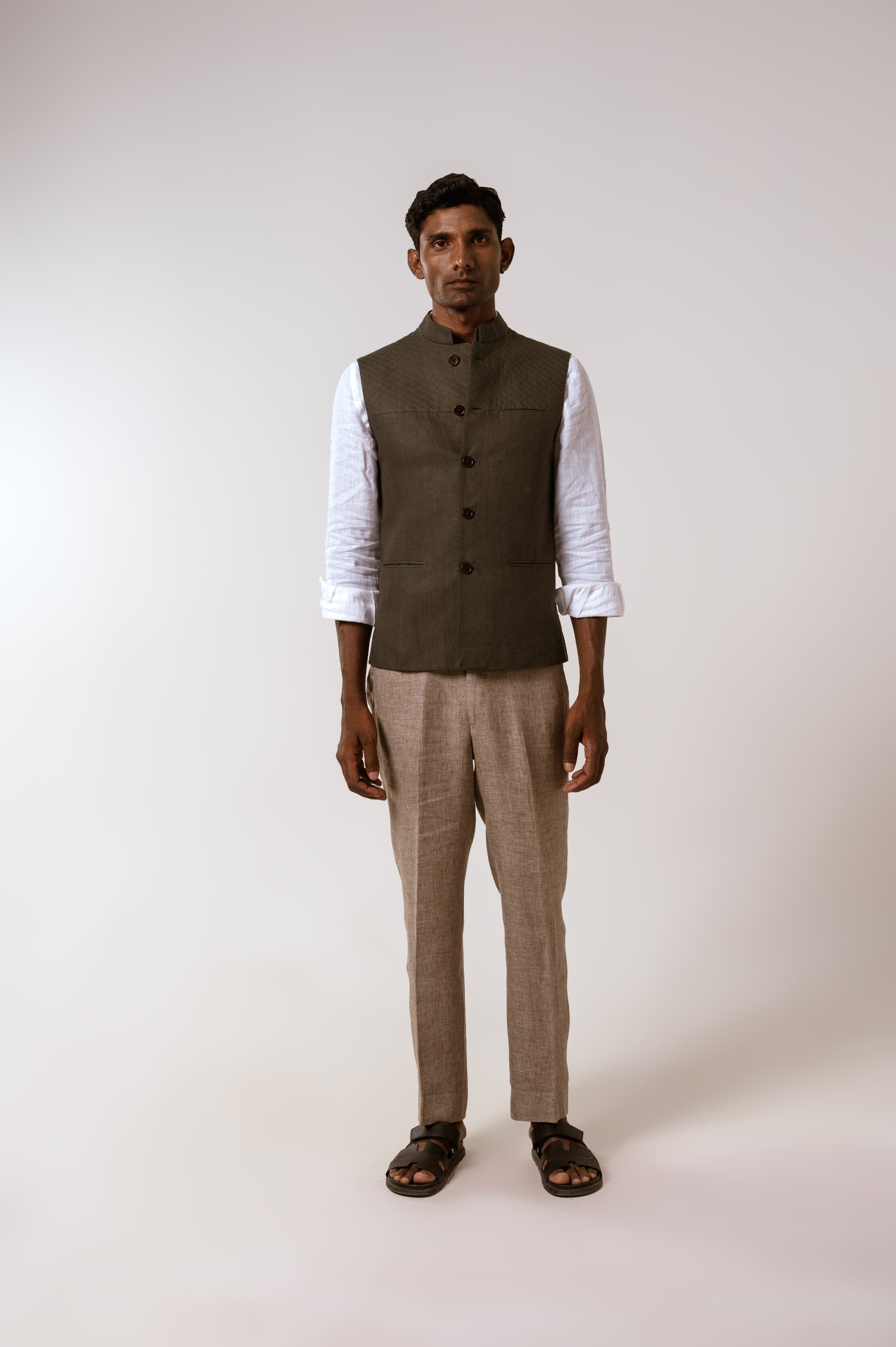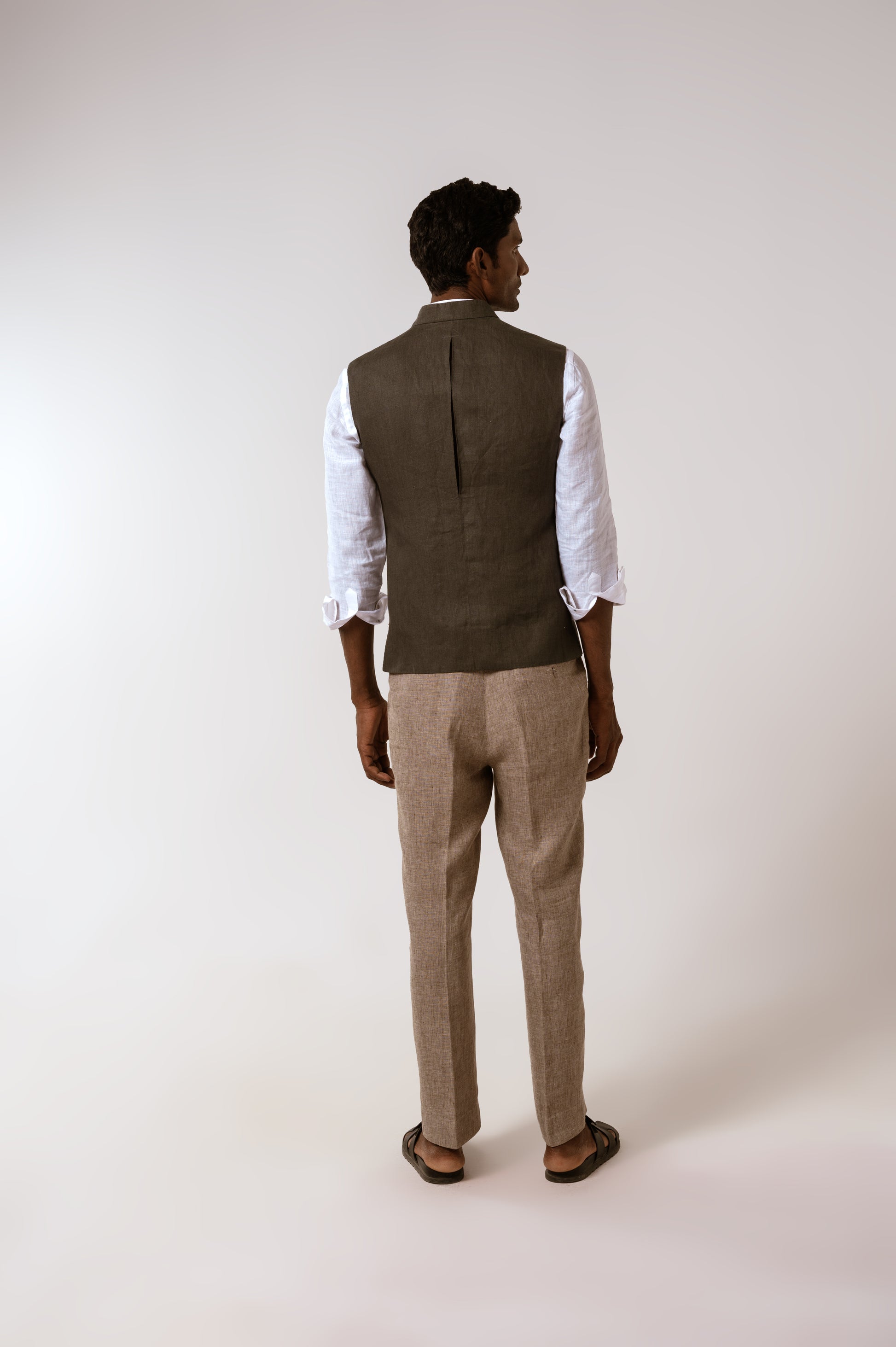 Sadri In Olive Green Linen